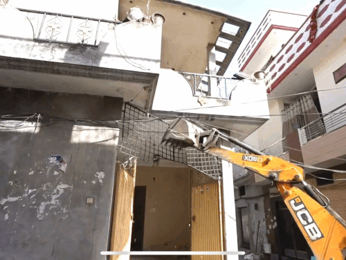 ਬੁਲਡੋਜ਼ਰ ਦੋਸ਼ੀ ਦੇ ਘਰ ਨੂੰ ਛੱਡ ਗਿਆ.