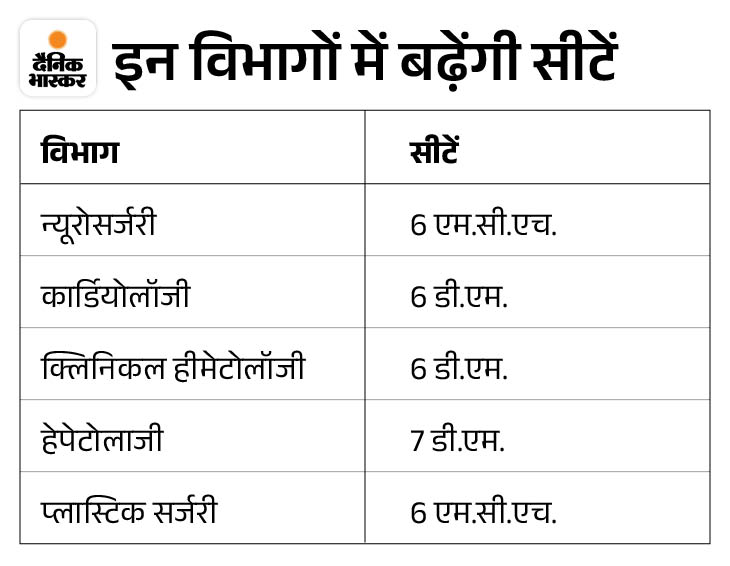 ਮਰੀਜ਼ਾਂ ਨੂੰ ਬਿਹਤਰ ਡਾਕਟਰੀ ਸੇਵਾਵਾਂ ਪ੍ਰਦਾਨ ਕਰਨ ਅਤੇ ਮੈਡੀਕਲ ਸਿੱਖਿਆ ਨੂੰ ਮਜ਼ਬੂਤ ਕਰਨ ਦੇ ਉਦੇਸ਼ ਨਾਲ ਪੀਜੀਆਈ. ਇੱਥੇ 35 ਨਵੀਆਂ ਸੁਪਰ ਸਪੈਸ਼ਲਿਟੀ ਸੀਟਾਂ ਨੂੰ ਵਧਾਉਣ ਦੀ ਪ੍ਰਵਾਨਗੀ ਦੇ ਰਹੇ ਹਨ. ਇਹ ਸੀਟਾਂ 5 ਵਿਭਾਗਾਂ ਵਿੱਚ ਵਧੀਆਂ ਜਾਂਦੀਆਂ ਹਨ, ਜੋ ਸੁਪਰ ਵਿਸ਼ੇਸ਼ਤਾਵਾਂ ਸੇਵਾਵਾਂ ਦੀ ਗੁਣਵੱਤਾ ਵਿੱਚ ਸੁਧਾਰ ਕਰਦੀਆਂ ਹਨ.