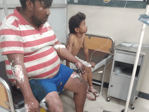 ਹਸਪਤਾਲ ਵਿਚ ਜਲਣ ਵਾਲਾ ਪਰਿਵਾਰ ਇਲਾਜ ਚੱਲ ਰਿਹਾ ਹੈ.