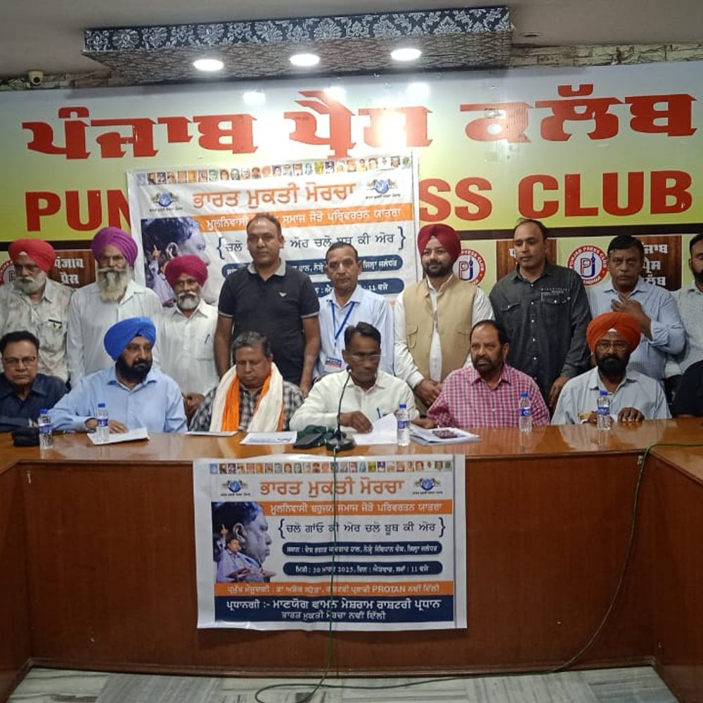 ਜਲੰਧਰ | ਭਾਰਤ ਮੁਕਤ ਮੋਰਚੇ ਦੇ ਰਾਸ਼ਟਰੀ ਪ੍ਰਧਾਨ ਵਾਮਨ ਮੇਸ਼ਾਰਮ ਨੇ ਐਤਵਾਰ ਨੂੰ ਜਲੰਧਰ ਵਿੱਚ 23 ਜ਼ਿਲ੍ਹਿਆਂ ਵਿੱਚ ਓਬੀਸੀ ਦੀ ਮਰਦਮਸ਼ੁਮਾਰੀ ਦੇ ਪ੍ਰਦਰਸ਼ਨ ਵਿੱਚ ਬੈਠਕ ਵਿੱਚ ਬੈਠਣ ਦੀ ਲਹਿਰ ਦਾ ਐਲਾਨ ਕੀਤਾ. ਉਨ੍ਹਾਂ ਕਿਹਾ ਕਿ ਇਹ ਅੰਦੋਲਨ ‘ਸਵਦੇਸ਼ੀ ਵਸਨੀਕ