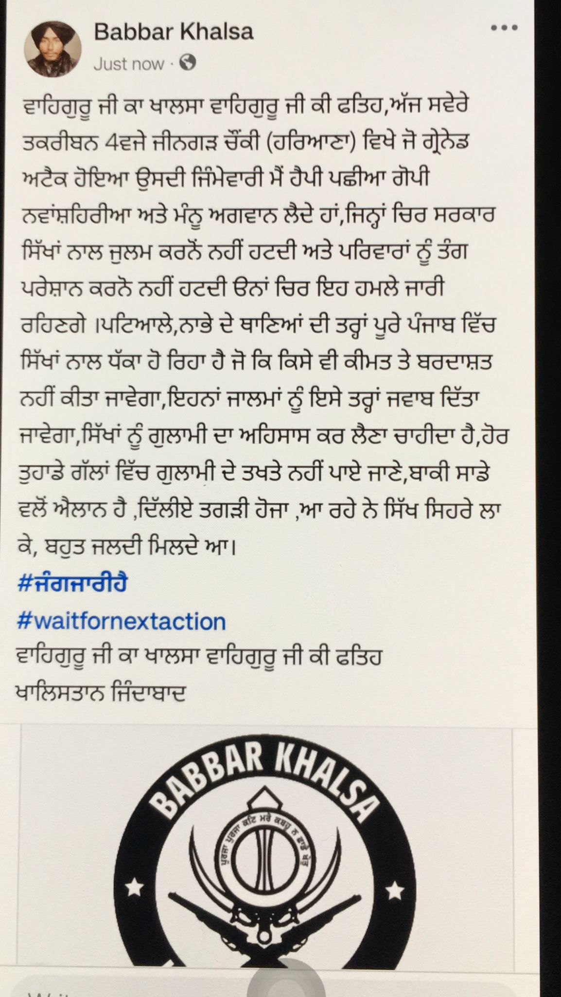 ਅੱਤਵਾਦੀ ਸੰਗਠਨ ਦੁਆਰਾ ਜਾਰੀ ਪੋਸਟ …