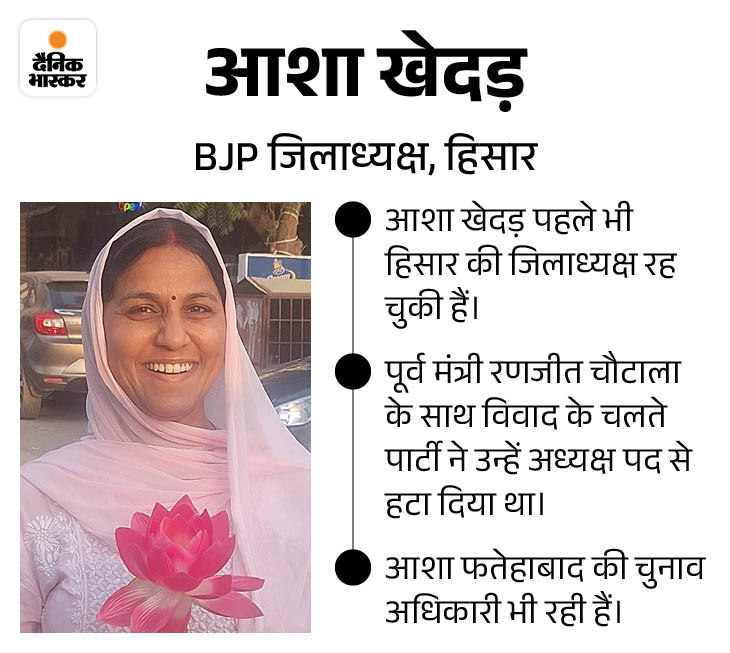 ਉਸੇ ਸਮੇਂ, ਆਸ਼ਾ ਗਧਾਾਰ ਨੇ ਨਵੇਂ ਬਣੇ ਰਾਸ਼ਟਰਪਤੰਕਾਰਾਂ ਵਿੱਚ ਹਿਸਾਰ ਵਿੱਚ ਮੁੜ ਹਿਸਾਬ ਲਗਾਇਆ ਹੈ. ਉਸ ਕੋਲ ਪਹਿਲਾਂ ਉਸ ਸਮੇਂ ਦੇ ਮੰਤਰੀ ਰਣਜੀਤ ਚੌਟਾਲਾ ਨਾਲ ਝਗੜੇ ਹੋਏ ਸਨ, ਜਿਸ ਕਾਰਨ ਉਸਨੂੰ ਹਟਾ ਦਿੱਤਾ ਗਿਆ ਸੀ.
