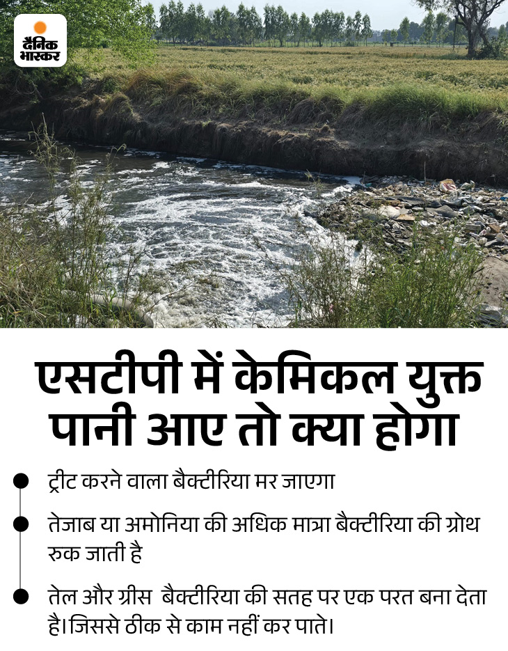 ਇਹ ਉਹ ਪਾਣੀ ਹੈ ਜੋ ਪੌਦੇ ਦੀ ਸਮਰੱਥਾ ਤੋਂ ਵੱਧ ਜਾਂਦਾ ਹੈ. ਇਹ ਰਸਾਇਣਕ -ਰਿਚ ਪਾਣੀ ਬਿਨਾਂ ਇਲਾਜ ਦੇ ਡਰੇਨ ਵਿੱਚ ਛੱਡਿਆ ਜਾਂਦਾ ਹੈ. ਰਸਾਇਣਕ-ਰਹਿਤ ਪਾਣੀ ਬਾਈਪਾਸ ਤੋਂ ਬਾਹਰ ਦੀ ਪਾਈਪ ਤੋਂ ਬਾਹਰ ਕੱ .ਿਆ ਜਾ ਰਿਹਾ ਹੈ. ਦੋਵੇਂ ਪਾਈਪਾਂ ਨੇ ਝਾੜੀਆਂ ਤੋਂ ਲੁਕਣ, ਜ਼ਮੀਨ ਵਿੱਚ ਛੁਪਣ, ਜ਼ਮੀਨ ਵਿੱਚ ਛੁਪਣ ਲਈ ਡਰੇਨ -6 ਵਿੱਚ ਡੋਲ੍ਹਿਆ ਜਾ ਰਿਹਾ ਸੀ. ਇਸ ਕੇਸ ਵਿੱਚ ਕੋਈ ਚੌਕਸ ਨਹੀਂ ਸੀ ਅਤੇ ਸਬੰਧਤ ਅਧਿਕਾਰੀਆਂ ਨੇ ਲਾਪਰਵਾਹੀ ਨਾਲ ਵੇਖਿਆ. ਮਿ municipal ਂਸਪਲ ਕਾਰਪੋਰੇਸ਼ਨ ਦੇ ਇਕ ਅਧਿਕਾਰੀ ਨੇ ਚਾਰਜ ਲੈਣ ਤੋਂ ਬਾਅਦ ਐਸਟੀਪੀ ਦਾ ਮੁਆਇਨਾ ਕਰਨ ਦੀ ਉਮੀਦ ਨਹੀਂ ਕੀਤੀ.