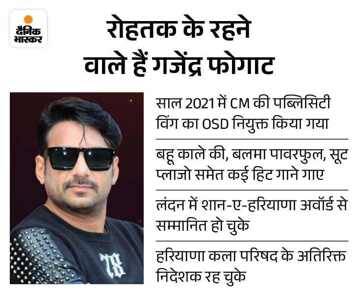 ਮੁੱਖ ਮੰਤਰੀ ਨਾਇਬ ਸਿੰਘ ਸੈਣੀ ਦੇ ਓ.ਐੱਸ.ਡੀ. ਅਤੇ ਹਰਾਨੀ ਆਰਟਿਸਟ ਗਜੇਂਦਰ ਫੋਗੈਟ ਹਰਾਨੀ ਆਰਟਿਸਟ ਮਨੀਓਮ ਸ਼ਰਮਾ ਦੇ ਸਾਹਮਣੇ ਆਉਣ ਵਾਲੇ ਮੀਡੀਆ ਦੇ ਸਾਹਮਣੇ ਆਏ ਹਨ, ਉਸਨੇ ਕਿਹਾ ਕਿ ਉਸਦਾ ਨਾਮ ਬੇਲੋੜਾ ਲਿਆ ਜਾ ਰਿਹਾ ਹੈ. ਪੁਲਿਸ ਦੀ ਸਾਈਬਰ ਟੀਮ ਕਾਰਵਾਈ ਕਰ ਰਹੀ ਹੈ, ਗੀਤ ਅਤੇ ਇੰਸਟਾਗ੍ਰਾਮ ਗਾਣੇ ਹਟਾਉਂਦੀ ਹੈ. ਉਸੇ ਸਮੇਂ, ਕਲਾਕਾਰ ਪ੍ਰਦੀਪ ਬਰਾ ਵੀ ਗਜਦਰ ਦੇ ਹੱਕ ਵਿੱਚ ਆ ਗਿਆ ਹੈ, ਜਿਸ ਨੇ ਇਸ ਨੂੰ ਜਾਤੀ ਦੇ ਮਾਮਲੇ ਵਜੋਂ ਦੱਸਿਆ ਹੈ.