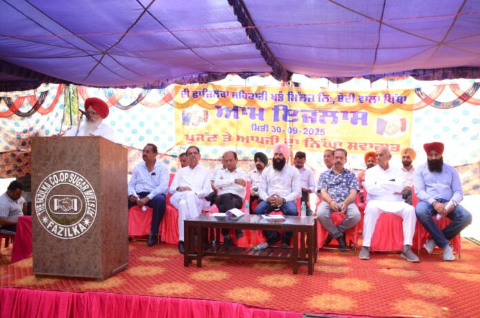 Punjab Desk : ਅੱਜ ਮਿਤੀ 30.09.2025 ਨੂੰ ਸਹਿਕਾਰੀ ਖੰਡ ਮਿੱਲ ਬੋਦੀਵਾਲਾ ਪਿੱਥਾ ਦਾ 10ਵਾਂ ਆਮ ਇਜਲਾਸ ਮਿੱਲ ਦੇ ਚੇਅਰਮੈਨ ਸ੍ਰੀ ਅਸ਼ਵਨੀ ਕੁਮਾਰ ਜੀ ਦੀ ਪ੍ਰਧਾਨਗੀ ਹੇਠ ਕਰਵਾਇਆ ਗਿਆ। ਇਸ ਇਜਲਾਸ ਵਿੱਚ ਮਿੱਲ ਦੇ ਹਿੱਸੇਦਾਰਾਂ ਵੱਲੋਂ ਸ਼ਮੂਲੀਅਤ ਕੀਤੀ ਗਈ । ਮਿੱਲ ਦੇ ਚੇਅਰਮੈਨ ਵੱਲੋਂ ਸਮੂਹ ਹਾਜ਼ਰ ਮੈਂਬਰਾਂ ਨੂੰ ੌਜੀ ਆਇਆਂ ਨੂੰੌ ਆਖਦਿਆਂ ਆਮ ਇਜਲਾਸ ਦੀ ਸ਼ੁਰੂਆਤ ਕੀਤੀ ਗਈ ।