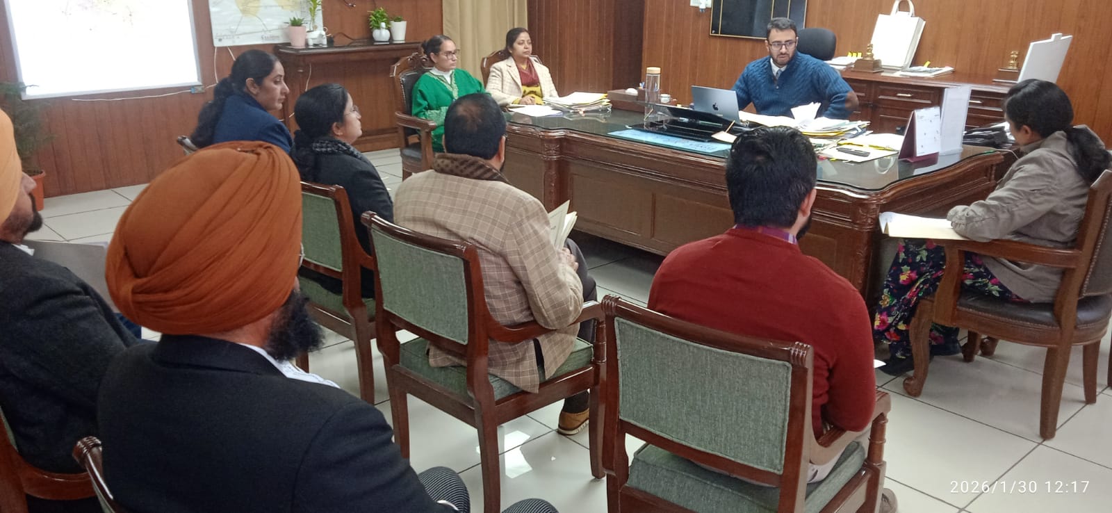 Punjab Desk :  ਡਿਪਟੀ ਕਮਿਸ਼ਨਰ ਬਰਨਾਲਾ ਹਰਪ੍ਰੀਤ ਸਿੰਘ ਆਈ ਏ ਐੱਸ ਨੇ ਅੱਜ ਇੱਥੇ ਜ਼ਿਲ੍ਹਾ ਪ੍ਰਬੰਧਕੀ ਕੰਪਲੈਕਸ ਵਿੱਚ ਵੱਖ ਵੱਖ ਵਿਭਾਗਾਂ ਨਾਲ ਮਹੀਨਾਵਾਰ ਮੀਟਿੰਗ ਕਰਕੇ ਵਿਭਾਗਾਂ ਦੀਆਂ ਸਕੀਮਾਂ ਅਤੇ ਪ੍ਰਗਤੀ ਦਾ ਜਾਇਜ਼ਾ ਲਿਆ।