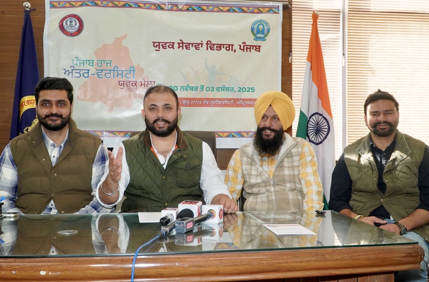 ਅੱਜ ਇੱਥੇ ਇਹ ਜਾਣਕਾਰੀ ਦਿੰਦਿਆਂ ਪੰਜਾਬ ਯੁਵਕ ਵਿਕਾਸ ਬੋਰਡ ਦੇ ਚੇਅਰਮੈਨ ਪਰਮਿੰਦਰ ਸਿੰਘ ਗੋਲਡੀ ਨੇ ਪੱਤਰਕਾਰਾਂ ਕਰਦਿਆਂ ਸਾਂਝੀ ਕੀਤੀ। ਇਸ ਮੌਕੇ ਉਨ੍ਹਾਂ ਨਾਲ ਪੰਜਾਬ ਦੇ ਯੁਵਕ ਸੇਵਾਵਾਂ ਵਿਭਾਗ ਦੇ ਡਿਪਟੀ ਡਾਇਰੈਕਟਰ ਕੁਲਵਿੰਦਰ ਸਿੰਘ ਅਤੇ ਬੋਰਡ ਦੇ ਮੈਂਬਰ ਸੰਜੀਵ ਚੌਧਰੀ ਅਤੇ ਨਵਲਦੀਪ ਸਿੰਘ ਵੀ ਹਾਜ਼ਰ ਸਨ।