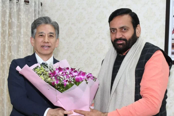 हरियाणा के मुख्यमंत्री श्री नायब सिंह सैनी से आज एक जापानी डेलिगेशन ने मुलाकात की और हरियाणा में लगाए जा रहे विभिन्न प्रोजेक्ट्स पर चर्चा हुई। डेलिगेशन में श्री फुमियो सशीडा, चेयरमैन, श्री काज़ुनूबो मियाके, श्री गुआन जैमिन, जनरल मैनेजर, ए टी एल व सुमित शामिल थे। इस मौके पर मुख्यमंत्री के प्रधान सचिव श्री अरुण गुप्ता व विदेश सहयोग विभाग के सलाहकार श्री पवन चौधरी मौजूद रहे।