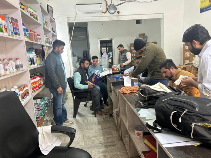 ਖੇਤੀਬਾੜੀ ਅਤੇ ਕਿਸਾਨ ਕਲਿਆਣ ਵਿਭਾਗ ਵੱਲੋਂ ਜਲਾਲਾਬਾਦ ਵਿਚ ਖਾਦ, ਕੀਟਨਾਸ਼ਕਾਂ ਤੇ ਨਦੀਨ ਨਾਸ਼ਕ ਵਿਕ੍ਰੇਤਾਵਾਂ ਦੀਆਂ ਦੁਕਾਨਾਂ ਦੀ ਚੈਕਿੰਗ ਕੀਤੀ ਗਈ । ਮੁੱਖ ਖੇਤੀਬਾੜੀ ਅਫ਼ਸਰ ਡਾ: ਸੰਦੀਪ ਰਿਣਵਾਂ ਨੇ ਕਿਹਾ ਕਿ ਜੇਕਰ ਕੋਈ ਕਿਸਾਨਾਂ ਨੂੰ ਬਿਨ੍ਹਾਂ ਜਰੂਰਤ ਦਾ ਸਮਾਨ ਜਬਰਦਸਤੀ ਵੇਚਦਾ ਪਾਇਆ ਗਿਆ ਤਾਂ ਸਖ਼ਤ ਕਾਰਵਾਈ ਕੀਤੀ ਜਾਵੇਗੀ। ਉਨ੍ਹਾਂ ਨੇ ਦੁਕਾਨਦਾਰਾਂ ਨੂੰ ਸਟਾਕ ਨੂੰ ਪ੍ਰਦਰਸ਼ਿਤ ਕਰਨ ਦੀ ਹਦਾਇਤ ਵੀ ਕੀਤੀ।