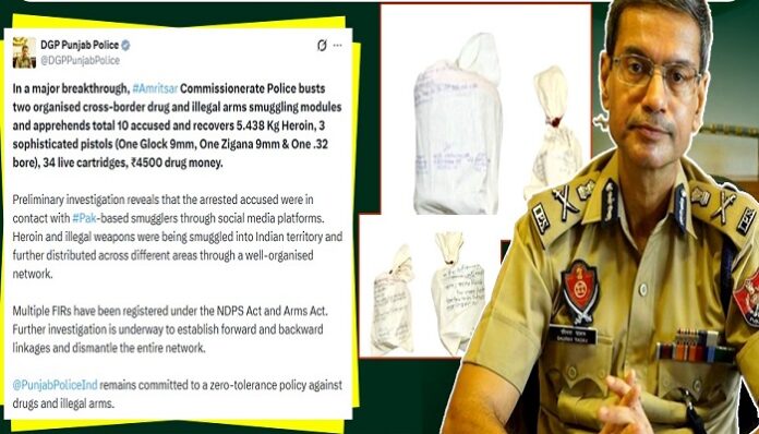 Punjab Desk : ਕਮਿਸ਼ਨਰੇਟ ਪੁਲਿਸ ਨੇ ਸਰਹੱਦ ਪਾਰ ਚੱਲ ਰਹੇ ਨਸ਼ਾ ਤੇ ਗੈਰ-ਕਾਨੂੰਨੀ ਹਥਿਆਰ ਤਸਕਰੀ ਨੈੱਟਵਰਕ ਦਾ ਭੰਡਾਫੋੜ ਕਰਦਿਆਂ 10 ਦੋਸ਼ੀਆਂ ਨੂੰ ਗ੍ਰਿਫ਼ਤਾਰ ਕੀਤਾ ਹੈ। ਇਹ ਕਾਰਵਾਈ ਪੁਲਿਸ ਕਮਿਸ਼ਨਰ Gurpreet Singh Bhullar ਦੀ ਅਗਵਾਈ ਹੇਠ ਕੀਤੀ ਗਈ।