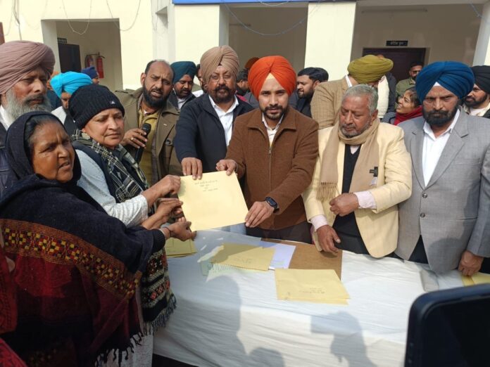 Punjab Desk : ਪੰਜਾਬ ਦੇ ਮੁੱਖ ਮੰਤਰੀ ਸ੍ਰ ਭਗਵੰਤ ਸਿੰਘ ਮਾਨ ਦੇ ਓ.ਐਸ.ਡੀ. ਸੁਖਵੀਰ ਸਿੰਘ ਅਤੇ ਪੰਜਾਬ ਲਘੂ ਉਦਯੋਗ ਤੇ ਨਿਰਯਾਤ ਨਿਗਮ ਦੇ ਚੇਅਰਮੈਨ ਦਲਵੀਰ ਸਿੰਘ ਢਿੱਲੋਂ ਨੇ ਅੱਜ ਮੁੱਖ ਮੰਤਰੀ ਸਹਾਇਤਾ ਕੇਂਦਰ ਵਿਖੇ ਧੂਰੀ ਸ਼ਹਿਰ ਦੇ 255 ਲਾਭਪਾਤਰੀਆਂ ਨੂੰ ਕੱਚੇ ਘਰਾਂ ਨੂੰ ਪੱਕੇ ਕਰਨ ਲਈ ਸਰਕਾਰ ਵੱਲੋਂ ਦਿੱਤੀ ਜਾਂਦੀ ਗ੍ਰਾਂਟ ਦੇ ਪ੍ਰਵਾਨਗੀ ਪੱਤਰਾਂ ਦੀ ਵੰਡ ਕੀਤੀ।
