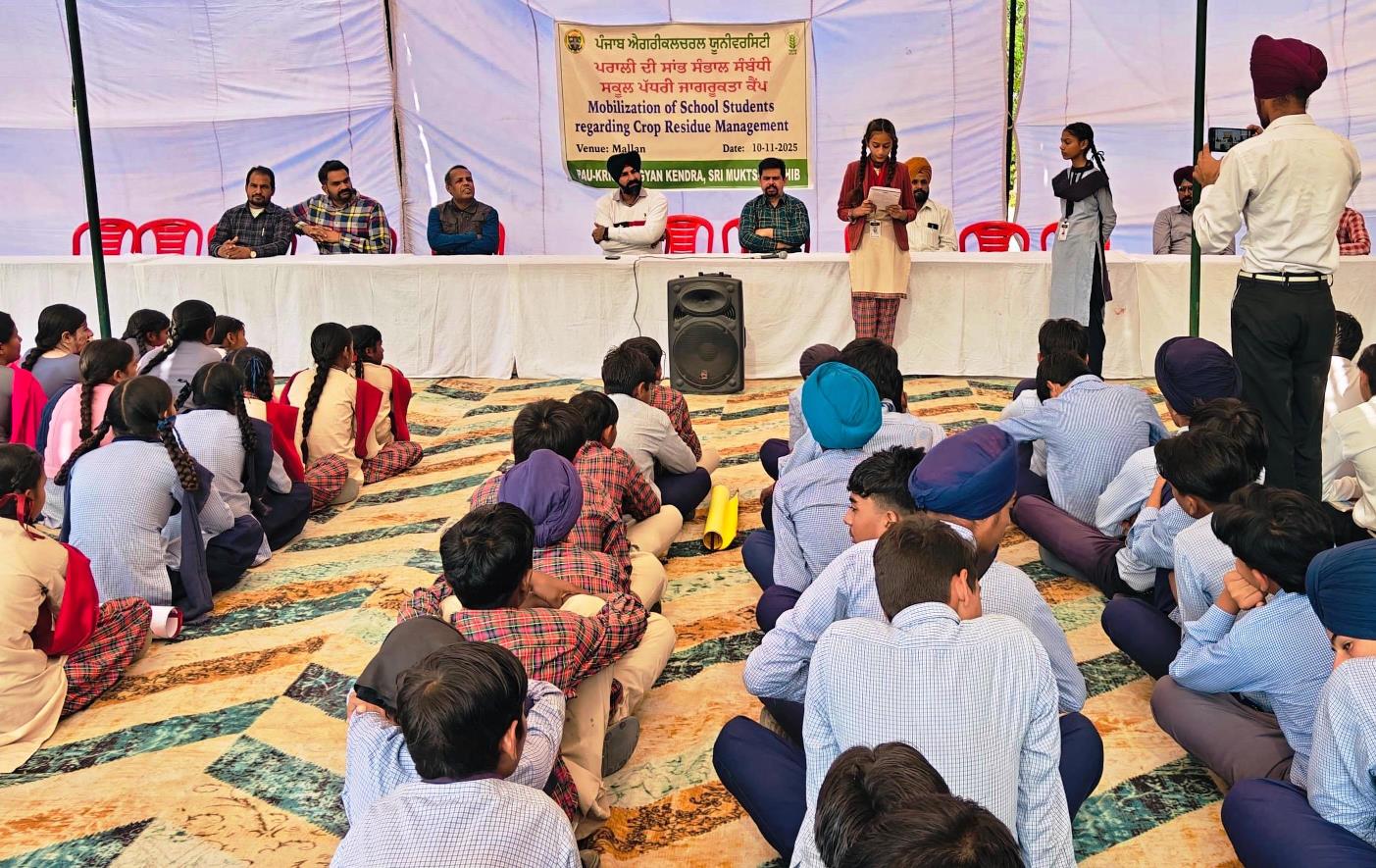 ਡਾ. ਸੁਖਜਿੰਦਰ ਸਿੰਘ, ਸਹਾਇਕ ਪ੍ਰੋਫੈਸਰ (ਫ਼ਲ ਵਿਗਿਆਨ) ਨੇ ਫ਼ਲਾਂ ਅਤੇ ਸਬਜੀਆਂ ਦੀ ਪੌਸ਼ਟਿਕ ਮਹੱਹਤਾ ਸਮਝਾਉਂਦੇ ਹੋਏ ਸਕੂਲੀ ਵਿਦਿਆਰਥੀਆਂ ਨੂੰ ਘਰੇਲੂ ਬਗੀਚੀ ਲਗਾਉਣ ਲਈ ਪ੍ਰੇਰਿਤ ਕੀਤਾ। ਮੰਚ ਦੀ ਕਾਰਵਾਈ ਚਲਾਉਂਦਿਆਂ ਡਾ. ਗੁਰਵਿੰਦਰ ਸਿੰਘ, ਸਹਾਇਕ ਪ੍ਰੋਫੈਸਰ (ਪਸਾਰ ਸਿੱਖਿਆ) ਨੇ ਵਿਦਿਆਰਥੀਆਂ ਨੂੰ ਪ੍ਰੇਰਦੇ ਹੋਏ ਦੱਸਿਆ ਕਿ ਪਰਾਲੀ ਦੀ ਸੁਚੱਜੀ ਸਾਂਭ ਸੰਭਾਲ ਦਾ ਸੁਨੇਹਾਂ ਪਿੰਡ ਦੇ ਕਿਸਾਨਾਂ ਤੱਕ ਪਹੁੰਚਾ ਕੇ ਇਸ ਸਮਾਜਿਕ ਕੰਮ ਵਿੱਚ ਉਹ ਆਪਣਾ ਮਹੱਤਵਪੂਰਨ ਯੋਗਦਾਨ ਪਾ ਸਕਦੇ ਹਨ, ਇਸ ਤੋਂ ਇਲਾਵਾ ਉਹਨਾਂ ਨੇ ਪਰਾਲੀ ਦੀ ਸਾਂਭ ਸੰਭਾਲ ਲਈ ਕੇ.ਵੀ.ਕੇ. ਵੱਲੋਂ ਕੀਤੀਆਂ ਜਾ ਰਹੀਆਂ ਵੱਖ-ਵੱਖ ਗਤੀਵਿਧੀਆਂ ਬਾਰੇ ਦੱਸਿਆ ਅਤੇ ਵਿਦਿਆਰਥੀਆਂ ਨੂੰ ਇਸ ਜਾਗਰੂਕਤਾ ਮੁਹਿੰਮ ਵਿੱਚ ਅਹਿਮ ਜ਼ਿੰਮੇਵਾਰੀ ਨਿਭਾਉਣ ਲਈ ਪ੍ਰੇਰਿਆ।