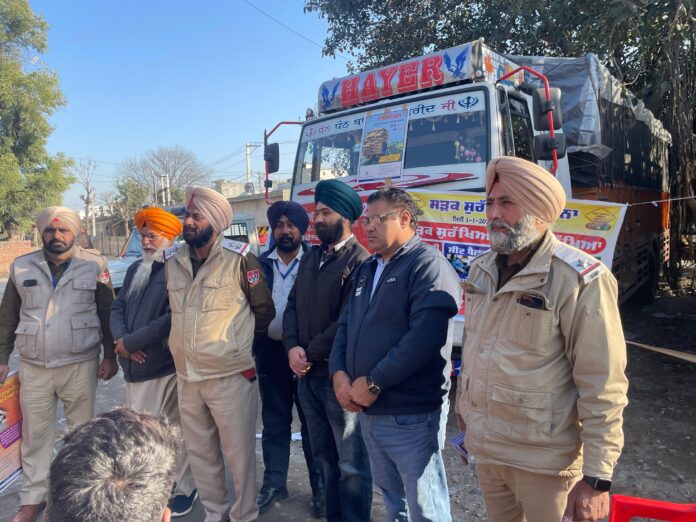 ਸੜਕ ਸੁਰੱਖਿਆ ਮਹੀਨੇ ਤਹਿਤ ਜ਼ਿਲ੍ਹਾ ਪ੍ਰਸਾਸ਼ਨ ਦੇ ਦਿਸ਼ਾ ਨਿਰਦੇਸ਼ਾਂ ਤਹਿਤ ਸਹਾਇਕ ਰਿਜਨਲ ਟਰਾਂਸਪੋਰਟ ਅਫਸਰ ਸ. ਜਸਵਿੰਦਰ ਸਿੰਘ ਦੀ ਅਗਵਾਈ ਹੇਠ ਪੁਲਿਸ ਵਿਭਾਗ, ਟਰਾਂਸਪੋਰਟ ਵਿਭਾਗ ਅਤੇ ਸਰਬੱਤ ਦਾ ਭਲਾ ਚੈਰੀਟੇਬਲ ਟਰੱਸਟ ਫਰੀਦਕੋਟ ਵੱਲੋ ਬਾਬਾ ਫਰੀਦ ਮਿੰਨੀ ਟਰੱਕ ਯੂਨੀਅਨ ਫਰੀਦਕੋਟ ਵਿਖੇ ਵਹੀਕਲਾਂ ਦੀ ਓਵਰਲੋਡਿਗ ਨਾ ਕਰਨ ਸਬੰਧੀ ਜਾਗਰੂਕਤਾ ਕੈਂਪ ਲਗਾਇਆ ਗਿਆ ।