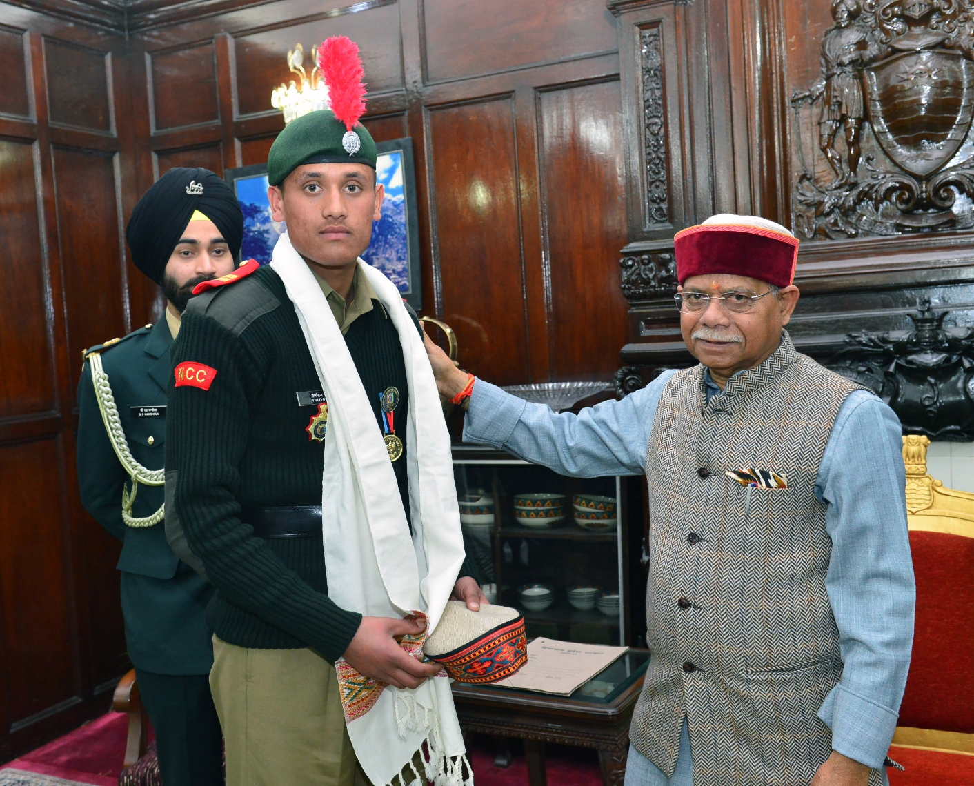 ਰਾਜਪਾਲ ਨੇ ਕੈਡਟਾਂ ਨੂੰ ਸਨਮਾਨਿਤ ਕਰਦਿਆਂ ਰਾਸ਼ਟਰੀ ਪੱਧਰ ‘ਤੇ ਰਾਜ ਦੀ ਨੁਮਾਇੰਦਗੀ ਕਰਨ ਲਈ ਉਨ੍ਹਾਂ ਨੂੰ ਵਧਾਈ ਦਿੱਤੀ। ਉਨ੍ਹਾਂ ਗਣਤੰਤਰ ਦਿਵਸ ਕੈਂਪ ਵਿੱਚ ਭਾਗ ਲੈਣ ਵਾਲੇ ਹਿਮਾਚਲ ਪ੍ਰਦੇਸ਼ ਦੇ ਸਾਰੇ ਐਨ.ਸੀ.ਸੀ. ਕੈਡਟਾਂ ਦੇ ਸ਼ਾਨਦਾਰ ਪ੍ਰਦਰਸ਼ਨ ‘ਤੇ ਖੁਸ਼ੀ ਪ੍ਰਗਟ ਕੀਤੀ ਅਤੇ ਉਤਸ਼ਾਹ ਵਜੋਂ 50 ਹਜ਼ਾਰ ਰੁਪਏ ਦੀ ਰਾਸ਼ੀ ਦੇਣ ਦਾ ਐਲਾਨ ਕੀਤਾ।