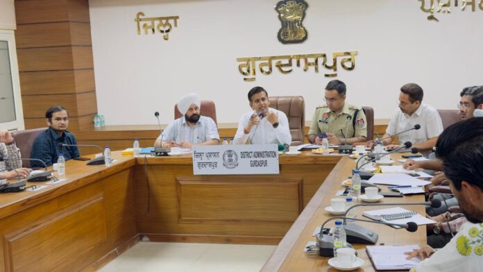 ਮੀਟਿੰਗ ਦੌਰਾਨ ਐੱਸ.ਐੱਸ.ਪੀ. ਗੁਰਦਾਸਪੁਰ ਸ੍ਰੀ ਆਦਿੱਤਯ, ਵਧੀਕ ਡਿਪਟੀ ਕਮਿਸ਼ਨਰ (ਜਨਰਲ) ਡਾ. ਹਰਜਿੰਦਰ ਸਿੰਘ ਬੇਦੀ, ਵਧੀਕ ਡਿਪਟੀ ਕਮਿਸ਼ਨਰ (ਵਿਕਾਸ) ਸ੍ਰੀ ਗੁਰਪ੍ਰੀਤ ਸਿੰਘ ਗਿੱਲ, ਐੱਸ.ਡੀ.ਐੱਮ. ਦੀਨਾਨਗਰ ਸ. ਜਸਪਿੰਦਰ ਸਿੰਘ ਭੁੱਲਰ, ਐੱਸ.ਡੀ.ਐੱਮ. ਕਲਾਨੌਰ ਸ੍ਰੀਮਤੀ ਜਯੋਤਸਨਾ ਸਿੰਘ, ਐੱਸ.ਡੀ.ਐੱਮ. ਡੇਰਾ ਬਾਬਾ ਨਾਨਕ ਡਾ. ਆਦਿੱਤਯ ਸ਼ਰਮਾ, ਐੱਸ.ਡੀ.ਐੱਮ. ਗੁਰਦਾਸਪੁਰ ਸ. ਮਨਜੀਤ ਸਿੰਘ ਰਾਜਲਾ, ਐੱਸ.ਡੀ.ਐੱਮ. ਫ਼ਤਹਿਗੜ੍ਹ ਚੂੜੀਆਂ ਗੁਰਮੰਦਰ ਸਿੰਘ, ਸਹਾਇਕ ਕਮਿਸ਼ਨਰ (ਜਨਰਲ) ਸ੍ਰੀ ਆਦਿੱਤਯ ਗੁਪਤਾ, ਸਹਾਇਕ ਕਮਿਸ਼ਨਰ ਸ੍ਰੀ ਕੁਲਦੀਪ ਰਾਜ, ਸਹਾਇਕ ਕਮਿਸ਼ਨਰ ਰੁਪਿੰਦਰਪਾਲ ਸਿੰਘ, ਆਰ.ਟੀ.ਓ. ਸ੍ਰੀਮਤੀ ਨਵਜੋਤ ਸ਼ਰਮਾ ਤੋਂ ਇਲਾਵਾ ਵੱਖ-ਵੱਖ ਵਿਭਾਗਾਂ ਦੇ ਜ਼ਿਲ੍ਹਾ ਅਧਿਕਾਰੀ ਹਾਜ਼ਰ ਸਨ।