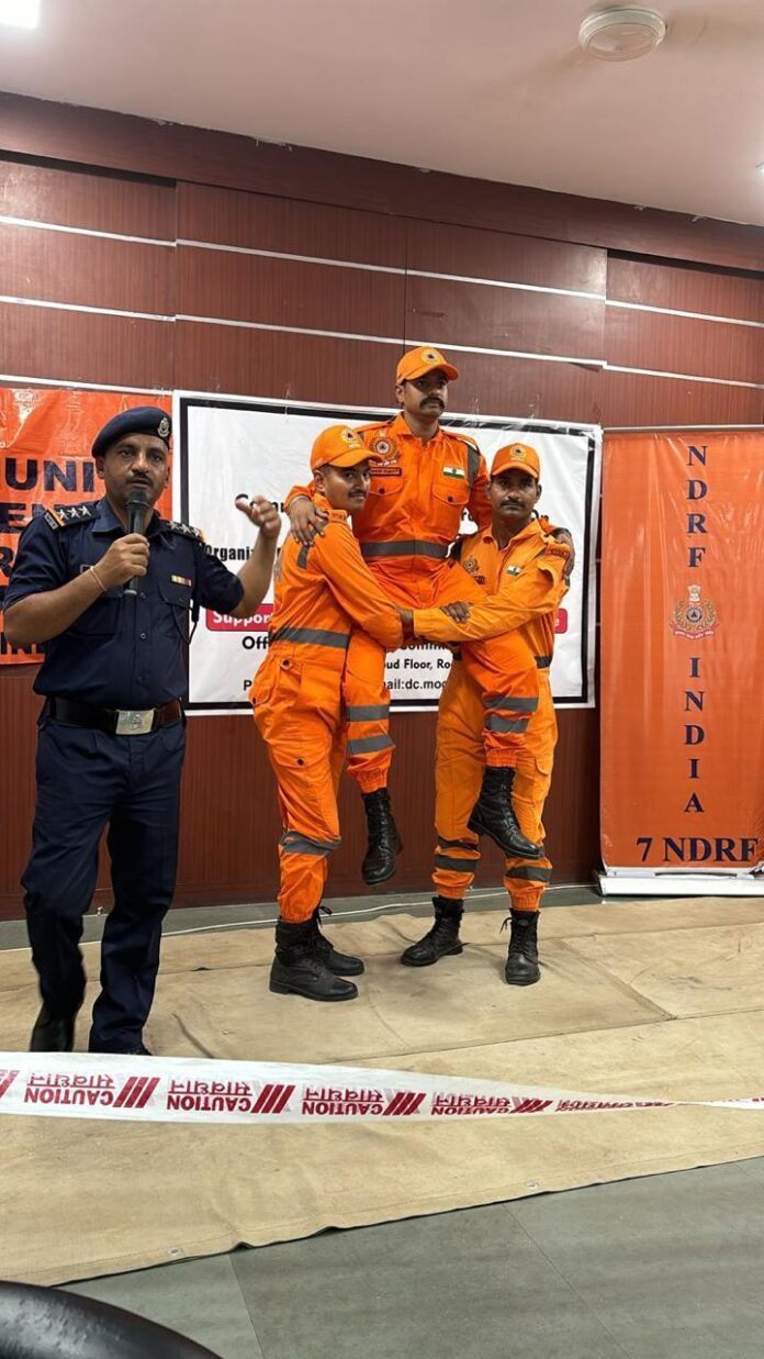 ਇੰਸਪੈਕਟਰ ਐਨ.ਡੀ.ਆਰ.ਐਫ. ਸ਼੍ਰੀ ਅਸ਼ੋਕ ਚੌਧਰੀ ਨੇ ਅਜਿਹੇ ਸਮਾਗਮਾਂ ਦੌਰਾਨ ਜਨਤਾ ਲਈ ਸੁਰੱਖਿਆ ਸੁਝਾਅ ਅਤੇ ਸਾਵਧਾਨੀਆਂ ਸਾਂਝੀਆਂ ਕੀਤੀਆਂ। ਟੀਮ ਦੁਆਰਾ ਸੀ.ਪੀ.ਆਰ. ਅਤੇ ਡ੍ਰੌਪ ਕਵਰ ਐਂਡ ਹੋਲਡ ਡ੍ਰਿਲ ‘ਤੇ ਪ੍ਰਦਰਸ਼ਨੀ ਦਿਖਾਈ ਗਈ। ਉਨ੍ਹਾਂ ਨੇ ਕਿਸੇ ਵੀ ਐਮਰਜੈਂਸੀ ਸਥਿਤੀ ਵਿੱਚ ਵਾਧੂ ਅਤੇ ਲਘੂ ਪਦਾਰਥਾਂ ਨਾਲ ਕਿਵੇਂ ਸੇਫਟੀ ਯੰਤਰ ਬਣਾਏ ਜਾ ਸਕਦੇ ਹਨ ਬਾਰੇ  ਬਾਰੇ ਵੀ ਦੱਸਿਆ। ਇਸ ਸੈਸ਼ਨ ਨੂੰ ਸਾਰਿਆਂ ਨੇ ਬੜੀ ਦਿਲਚਸਪੀ ਨਾਲ ਦੇਖਿਆ।