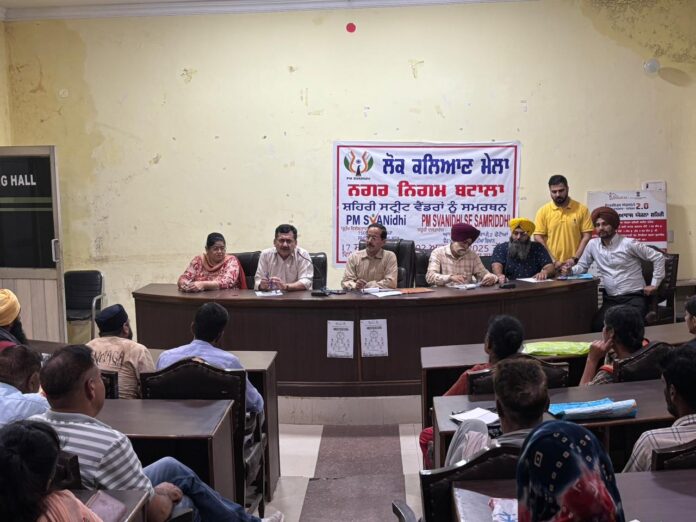 Punjab Desk : ਪੀ.ਐੱਮ.ਸਵੈਨਿਧੀ ਸਕੀਮ ਨੂੰ ਮੁੱਖ ਰੱਖਦੇ ਹੋਏ ਸਥਾਨਕ ਸਰਕਾਰ ਵਿਭਾਗ ਦੀਆ ਹਦਾਇਤਾਂ ਅਨੁਸਾਰ ਵਿਕਰਮਜੀਤ ਸਿੰਘ ਪਾਂਥੇ , ਕਮਿਸ਼ਨਰ ਨਗਰ ਨਿਗਮ-ਕਮ-ਐਸ.ਡੀ.ਐਮ ਬਟਾਲਾ ਦੀ ਅਗਵਾਈ ਹੇਠ ਨਗਰ ਨਿਗਮ ਬਟਾਲਾ ਵਿਖੇ ਲੋਕ ਕਲਿਆਣ ਮੇਲਾ ਲਗਾਇਆ ਗਿਆ ।