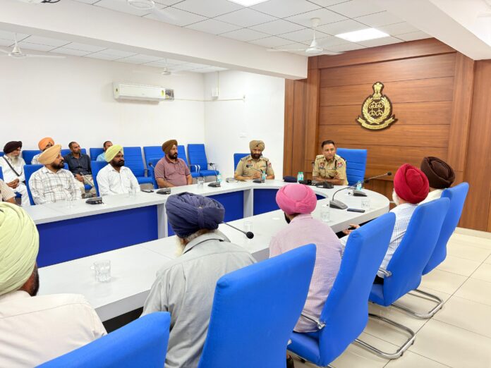 ਜ਼ਿਲ੍ਹਾ ਪੁਲਿਸ ਮੁਖੀ ਗਗਨ ਅਜੀਤ ਸਿੰਘ ਵੱਲੋਂ ਅੱਜ ਸਾਬਕਾ ਸੈਨਿਕਾਂ ਨਾਲ ਇਕ ਅਹਿਮ ਮੀਟਿੰਗ ਦਾ ਆਯੋਜਨ ਕੀਤਾ ਗਿਆ, ਜਿਸ ਵਿੱਚ ਜ਼ਿਲ੍ਹੇ ਦੇ ਵੱਖ-ਵੱਖ ਹਿੱਸਿਆਂ ਤੋਂ ਆਏ ਹੋਏ ਸਾਬਕਾ ਸੈਨਿਕਾਂ ਨੇ ਭਾਗ ਲਿਆ।ਇਸ ਮੌਕੇ ਐਸ.ਐਸ.ਪੀ. ਨੇ ਸਾਰੇ ਰੈਂਕ ਦੇ ਸਾਬਕਾ ਫੌਜੀਆਂ ਦੇ ਤਜਰਬੇ ਅਤੇ ਉਨ੍ਹਾਂ ਦੇ ਯੋਗਦਾਨ ਦੀ ਪ੍ਰਸ਼ੰਸਾ ਕੀਤੀ ਅਤੇ ਪੁਲਿਸ-ਫੌਜ ਸਾਂਝ ਨੂੰ ਹੋਰ ਮਜ਼ਬੂਤ ਬਣਾਉਣ ਦੀ ਲੋੜ ’ਤੇ ਜ਼ੋਰ ਦਿੱਤਾ।ਮੀਟਿੰਗ ’ਚ ਡੀ ਐਸ ਪੀ ਸਪੈਸ਼ਲ ਬ੍ਰਾਚ ਰਣਜੀਤ ਸਿੰਘ ਤੋਂ ਇਲਾਵਾ ਹੋਰ ਪੁਲਿਸ ਪ੍ਰਸਾਸ਼ਿਨਕ ਅਧਿਕਾਰੀ ਵੀ ਮੌਜੂਦ ਸਨ ।