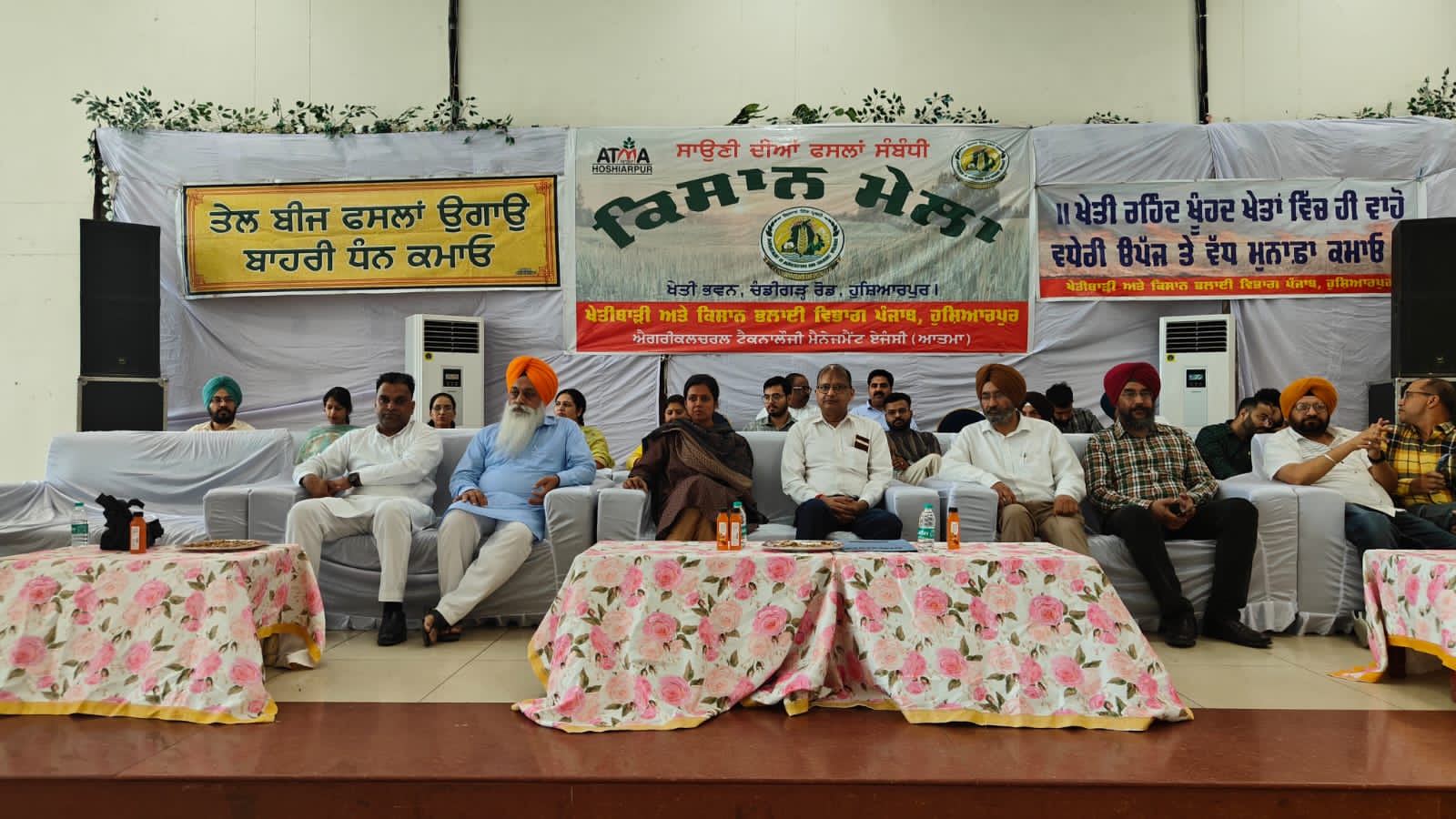ਖੇਤੀਬਾੜੀ ਅਤੇ ਕਿਸਾਨ ਭਲਾਈ ਵਿਭਾਗ, ਪੰਜਾਬ ਵੱਲੋਂ ਅੱਜ ਹੁਸ਼ਿਆਰਪੁਰ ਦੇ ਸਿਟੀ ਸੈਂਟਰ ਵਿਖੇ ਜ਼ਿਲ੍ਹਾ ਪੱਧਰੀ ਕਿਸਾਨ ਮੇਲਾ ਲਗਾਇਆ ਗਿਆ। ਇਹ ਮੇਲਾ ਵਿਭਾਗ ਦੇ ਡਾਇਰੈਕਟਰ ਦੇ ਦਿਸ਼ਾ-ਨਿਰਦੇਸ਼ਾਂ ਹੇਠ ਕਿਸਾਨਾਂ ਨੂੰ ਸਾਉਣੀ ਦੀਆਂ ਫਸਲਾਂ ਨਾਲ ਸਬੰਧਤ ਨਵੀਨਤਮ ਤਕਨੀਕਾਂ ਅਤੇ ਸਰਕਾਰੀ ਯੋਜਨਾਵਾਂ ਬਾਰੇ ਜਾਣਕਾਰੀ ਪ੍ਰਦਾਨ ਕਰਨ ਲਈ ਆਯੋਜਿਤ ਕੀਤਾ ਗਿਆ ਸੀ।