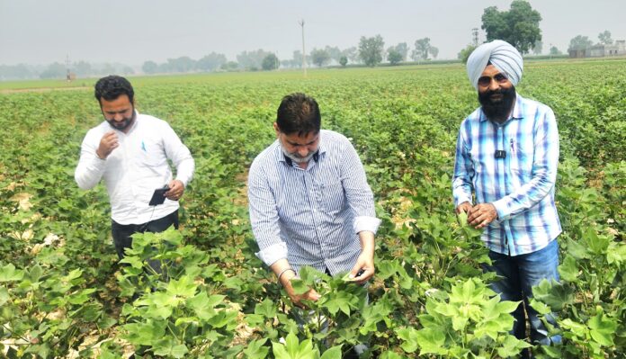 ਇਸ ਤੋਂ ਇਲਾਵਾ, ਅੱਜ ਮੁੱਖ ਖੇਤੀਬਾੜੀ ਅਫਸਰ ਡਾ. ਕਰਨਜੀਤ ਸਿੰਘ ਗਿੱਲ ਅਤੇ ਡਾ. ਕਰਨਜੀਤ ਸਿੰਘ, ਪੀ.ਡੀ (ਆਤਮਾ) ਵੱਲੋਂ ਜ਼ਿਲ੍ਹੇ ਦੇ ਵੱਖ-ਵੱਖ ਪਿੰਡਾਂ ਵਿੱਚ ਨਰਮੇ ਦੀ ਫ਼ਸਲ ਦੇ ਖੇਤਰਾਂ ਦਾ ਦੌਰਾ ਕੀਤਾ ਗਿਆ ਅਤੇ ਖੇਤਾਂ ਵਿੱਚ ਜਾ ਕੇ ਫ਼ਸਲ ਦੀ ਹਾਲਤ ਦੀ ਜਾਂਚ ਕੀਤੀ। ਇਸ ਦੌਰੇ ਦੌਰਾਨ ਉਨ੍ਹਾਂ ਨੇ ਦੇਖਿਆ ਕਿ ਅਜੇ ਤੱਕ ਚਿੱਟੀ ਮੱਖੀ (whitefly) ਦਾ ਹਮਲਾ ਆਰਥਿਕ ਕਗਾਰ (ETL) ਤੋਂ ਹੇਠਾ ਹੈ ਅਤੇ ਕਿਸੇ ਕਿਸਮ ਦੀ ਕੋਈ ਹੋਰ ਸਮੱਸਿਆ ਨਹੀ ਪਾਈ ਗਈ।