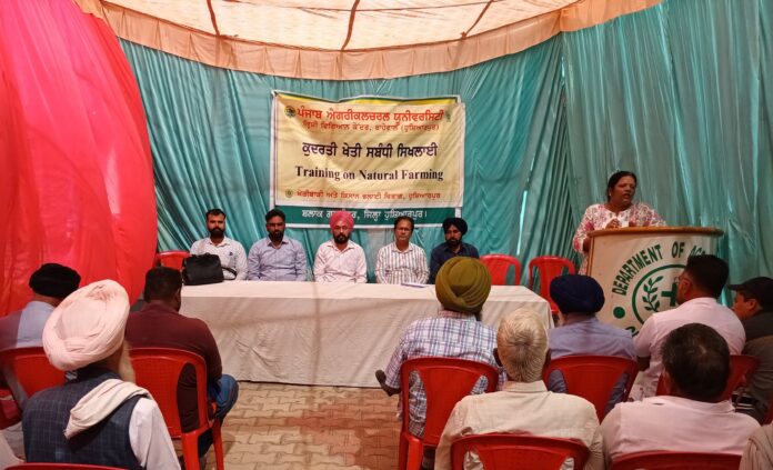 ਸਿਖਲਾਈ ਦੀ ਸ਼ੂਰੂਆਤ ਵਿਚ ਪੀ.ਏ.ਯੂ.-ਕ੍ਰਿਸ਼ੀ ਵਿਗਿਆਨ ਕੇਂਦਰ, ਹੁਸ਼ਿਆਰਪੁਰ ਦੇ ਸਹਾਇਕ ਪ੍ਰੋਫੈਸਰ (ਪੌਦ ਸੁਰੱਖਿਆ) ਡਾ.ਪ੍ਰਭਜੋਤ ਕੌਰ ਨੇ ਕਿਸਾਨਾਂ ਦਾ ਸਵਾਗਤ ਕਰਦਿਆਂ ਕੁਦਰਤੀ ਖੇਤੀ ਨਾਲ ਖਰਚ ਘਟਣ, ਮਿੱਟੀ ਦੀ ਉਪਜਾਊ ਸ਼ਕਤੀ ਵਧਣ ਅਤੇ ਮਨੁੱਖੀ ਸਿਹਤ ਅਤੇ ਵਾਤਾਵਰਨ ਦੀ ਸੁਰੱਖਿਆ ਹੋਣ ਬਾਰੇ ਦੱਸਿਆ। ਡਾ. ਪ੍ਰਭਜੋਤ ਨੇ ਕਿਸਾਨਾਂ ਨੂੰ ਕੁਦਰਤੀ ਖੇਤੀ ਵਿੱਚ ਵਰਤੇ ਜਾਣ ਵਾਲੇ ਵੱਖ-ਵੱਖ ਜੈਵਿਕ ਪਦਾਰਥਾਂ ਜਿਵੇਂ ਕਿ ਬੀਜ ਅੰਮ੍ਰਿਤ, ਜੀਵ ਅੰਮ੍ਰਿਤ, ਘਨ ਜੀਵ ਅੰਮ੍ਰਿਤ, ਬ੍ਰਹਮ ਅਸਤਰ ਅਤੇ ਅਗਨੀ ਅਸਤਰ ਬਾਰੇ ਵਿਸਥਾਰ ਨਾਲ ਜਾਣੂੰ ਕਰਵਾਇਆ। ਉਨ੍ਹਾਂ ਅੱਛਾਧਨ (ਮਲਚਿੰਗ) ਅਤੇ ਵਾਪਸਾ (ਮਿੱਟੀ ਵਿੱਚ ਨਮੀ ਸੰਭਾਲ) ਦੀਆਂ ਤਕਨੀਕਾਂ ਬਾਰੇ ਵੀ ਜਾਣਕਾਰੀ ਦਿੱਤੀ।