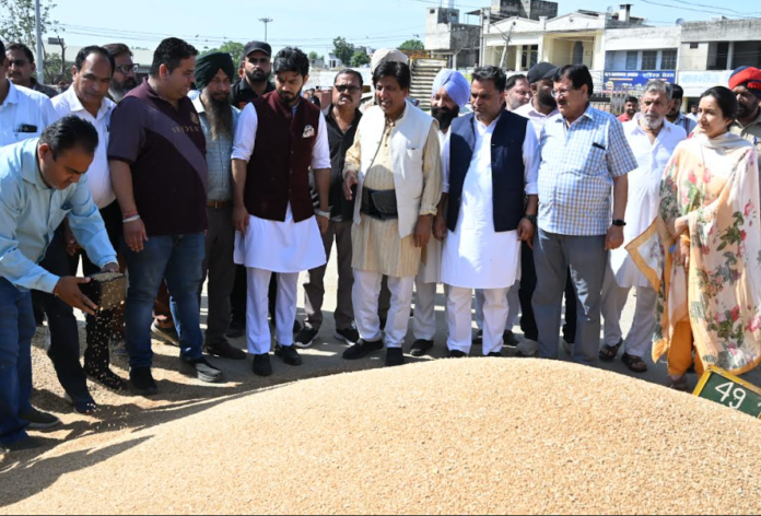 ਵਿਧਾਇਕ ਬ੍ਰਮ ਸ਼ੰਕਰ ਜਿੰਪਾ ਅਤੇ ਇਸ਼ਾਂਕ ਕੁਮਾਰ ਨੇ ਦਾਣਾ ਮੰਡੀ ‘ਚ ਸ਼ੁਰੂ ਕਰਵਾਈ ਕਣਕ ਦੀ ਖਰੀਦ