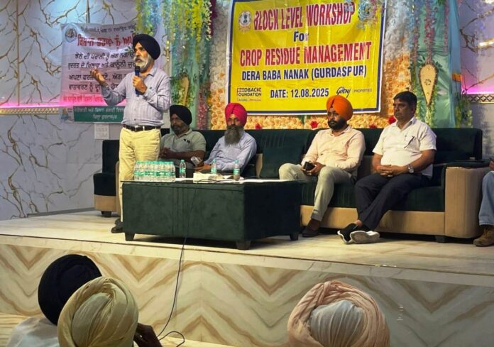 Punjab Desk : ਸ੍ਰੀ ਦਲਵਿੰਦਰਜੀਤ ਸਿੰਘ, ਡਿਪਟੀ ਕਮਿਸ਼ਨਰ ਗੁਰਦਾਸਪੁਰ ਦੀ ਅਗਵਾਈ ਹੇਠ ਜ਼ਿਲਾ ਪ੍ਰਸ਼ਾਸਨ ਵੱਲੋਂ ਫਸਲੀ ਰਹਿੰਦ ਖੂੰਹਦ ਸੰਭਾਲ ਸਕੀਮ ਤਹਿਤ ਜ਼ਿਲਾ ਗੁਰਦਾਸਪੁਰ ਨੂੰ ਪ੍ਰਦੂਸ਼ਿਣ ਮੁਕਤ ਬਨਾਉਣ ਲਈ ਆਰੰਭੀ ਮਹਿੰਮ ਤਹਿਤ ਫੀਡ ਬੈਕ ਫਾਊਂਡੇਸ਼ਨ ਵਲੋਂ ਖੇਤੀਬਾੜੀ ਅਤੇ ਕਿਸਾਨ ਭਲਾਈ ਵਿਭਾਗ ਦੇ ਸਹਿਯੋਗ ਨਾਲ ਡੇਰਾ ਬਾਬਾ ਨਾਨਕ ਵਿਖੇ ਬਲਾਕ ਪੱਧਰੀ ਕਿਸਾਨ ਜਾਗਰੂਕਤਾ ਕੈਂਪ ਲਗਾਇਆ ਗਿਆ। ਕੈਂਪ ਵਿੱਚ ਮੁੱਖ ਖੇਤੀਬਾੜੀ ਅਫ਼ਸਰ ਡਾ. ਅਮਰੀਕ ਸਿੰਘ ਬਤੌਰ ਮੁੱਖ ਮਹਿਮਾਨ ਸ਼ਾਮਿਲ ਹੋਏ ਅਤੇ ਕਿਸਾਨਾਂ ਦੀਆਂ ਸਮੱਸਿਆਵਾਂ ਵੀ ਸੁਣੀਆਂ।