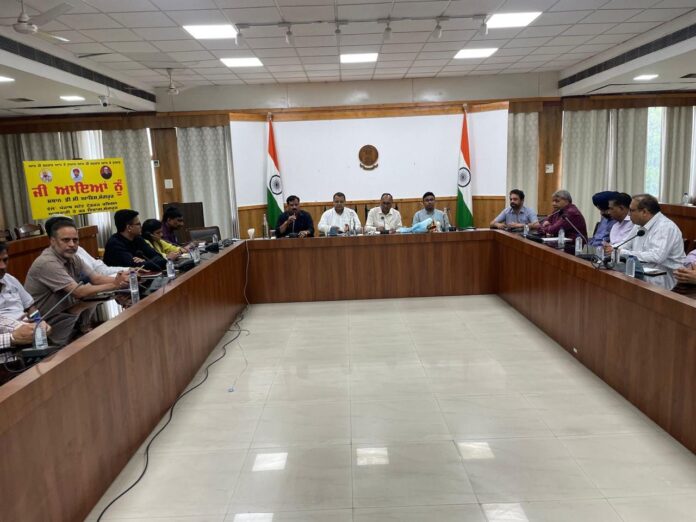 ਪੰਜਾਬ ਰਾਜ ਦੇ ਜੀ.ਐਸ.ਟੀ, ਜ਼ਿਲ੍ਹੇ, ਮੋਬਾਇਲ ਵਿੰਗ ਅਤੇ ਆਬਕਾਰੀ ਮਾਮਲਿਆਂ ਸਬੰਧੀ ਸਥਾਨਕ ਜ਼ਿਲ੍ਹਾ ਪ੍ਰਬੰਧਕੀ ਕੰਪਲੈਕਸ ਦੇ ਮੀਟਿੰਗ ਹਾਲ ਵਿਖੇ ਮੀਟਿੰਗ ਦੀ ਵਿਖੇ ਪ੍ਰਧਾਨਗੀ ਕਰਦਿਆਂ ਚੇਅਰਮੈਨ ਅਨਿਲ ਠਾਕੁਰ ਨੇ ਵੱਖ- ਵੱਖ ਵਪਾਰੀਆਂ, ਕਾਰੋਬਾਰੀਆਂ ਅਤੇ ਉਦਯੋਗਪਤੀਆਂ ਦੇ ਮਾਮਲਿਆਂ ਸਬੰਧੀ ਵਿਚਾਰ ਵਟਾਂਦਰਾ ਕੀਤਾ ਅਤੇ ਆਬਕਾਰੀ, ਜੀ ਐਸ ਟੀ ਵਿਭਾਗ ਵਿਭਾਗ ਨੂੰ ਕਰ ਮਾਲੀਆ ਵਧਾਉਣ ਲਈ ਵਿਭਾਗ ਅਤੇ ਵਪਾਰੀ ਭਾਈਚਾਰੇ ਦਰਮਿਆਨ ਸੁਖਾਵਾਂ ਤਾਲਮੇਲ ਬਣਾਉਣ ਲਈ ਕਿਹਾ।