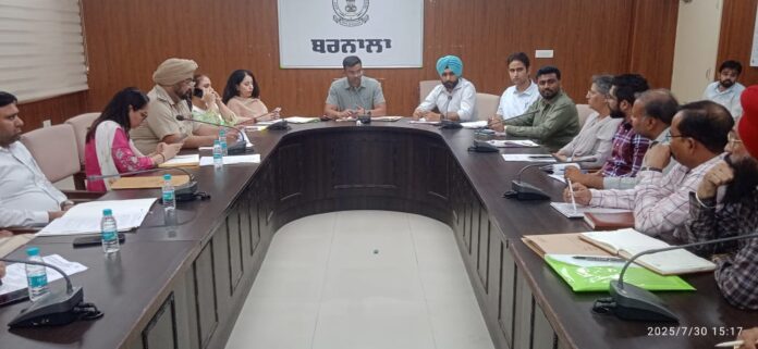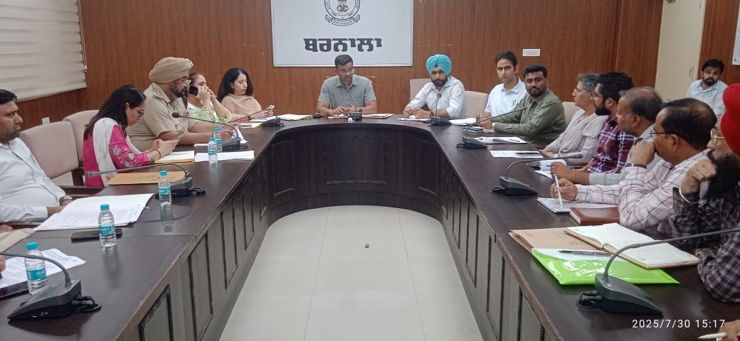 Punjab Desk : ਡਿਪਟੀ ਕਮਿਸ਼ਨਰ ਬਰਨਾਲਾ ਸ੍ਰੀ ਟੀ ਬੈਨਿਥ ਵਲੋਂ ਇੱਥੇ ਜ਼ਿਲ੍ਹਾ ਪ੍ਰਬੰਧਕੀ ਕੰਪਲੈਕਸ ਦੇ ਮੀਟਿੰਗ ਹਾਲ ਵਿੱਚ ਸੜਕ ਸੁਰੱਖਿਆ ਬਾਰੇ ਅਤੇ ਨਸ਼ਿਆਂ ਵਿਰੁੱਧ ਮੁਹਿੰਮ ਤਹਿਤ ਵੱਖ ਵੱਖ ਵਿਭਾਗਾਂ ਨਾਲ ਮੀਟਿੰਗ ਕੀਤੀ ਗਈ।