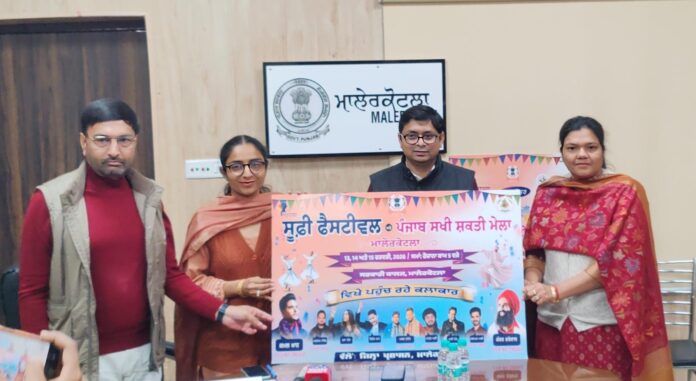 Punjab Desk : ਸੈਰ-ਸਪਾਟਾ ਅਤੇ ਸੱਭਿਆਚਾਰਕ ਮਾਮਲੇ ਵਿਭਾਗ ਦੇ ਸਹਿਯੋਗ ਨਾਲ ਅਤੇ ਪੇਂਡੂ ਵਿਕਾਸ ਤੇ ਪੰਚਾਇਤਾਂ, ਉਦਯੋਗ ਅਤੇ ਵਣਜ ਵਿਭਾਗ ਪੰਜਾਬ ਵੱਲੋਂ ਪੰਜਾਬ ਰਾਜ ਦਿਹਾਤੀ ਆਜੀਵਿਕਾ ਮਿਸ਼ਨ ਦੇ ਤਹਿਤ ਸਿਹਤ, ਸਨਮਾਨ ਅਤੇ ਸੱਭਿਆਚਾਰ ਦੇ ਮਹਾ-ਉਤਸਵ ਵਜੋਂ “ਸੂਫ਼ੀ ਫੈਸਟੀਵਲ” ਅਤੇ “ਪੰਜਾਬ ਸਖੀ ਸ਼ਕਤੀ ਮੇਲਾ” ਮਿਤੀ 13 ਤੋਂ 15 ਫਰਵਰੀ ਤੱਕ ਸਰਕਾਰੀ ਕਾਲਜ, ਮਾਲੇਰਕੋਟਲਾ ਵਿਖੇ ਆਯੋਜਿਤ ਕੀਤਾ ਜਾ ਰਿਹਾ ਹੈ।