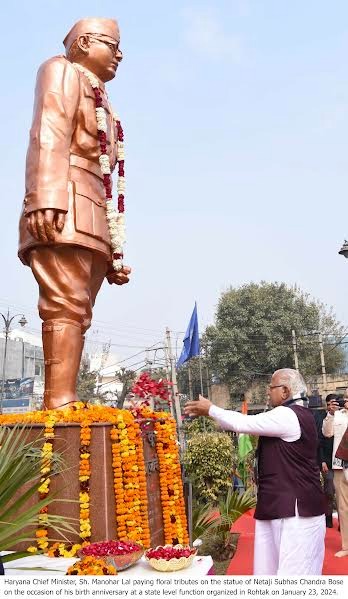 नेताजी सुभाष चंद्र बोस को पुष्पांजलि अर्पित कर केंद्रीय मंत्री मनोहर लाल ने दी श्रद्धांजलि