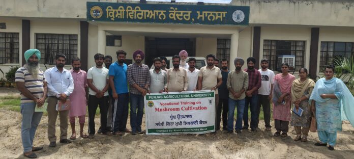 Punjab Desk : ਕ੍ਰਿਸ਼ੀ ਵਿਗਿਆਨ ਕੇਂਦਰ (ਕੇ.ਵੀ.ਕੇ.) ਮਾਨਸਾ ਵੱਲੋਂ 01 ਸਤੰਬਰ ਤੋਂ 05 ਸਤੰਬਰ, 2025 ਤੱਕ ਪੰਜ ਰੋਜ਼ਾ ਵਿਕਾਸ਼ੀਲ ਸਿਖਲਾਈ ਪ੍ਰੋਗਰਾਮ “ਸਹਾਇਕ ਧੰਦੇ ਵਜੋਂ ਖੁੰਭਾਂ ਦੀ ਖੇਤੀ” ਆਯੋਜਿਤ ਕੀਤਾ ਗਿਆ। ਇਸ ਸਿਖਲਾਈ ਦੌਰਾਨ 20 ਕਿਸਾਨਾਂ ਨੂੰ ਇਸ ਲਾਭਕਾਰੀ ਧੰਦੇ ਰਾਹੀਂ ਆਪਣੀ ਆਮਦਨ ਵਧਾਉਣ ਲਈ ਪ੍ਰੈਕਟੀਕਲ ਕੁਸ਼ਲਤਾਵਾਂ ਬਾਰੇ ਜਾਣੂ ਕਰਵਾਇਆ ਗਿਆ।
