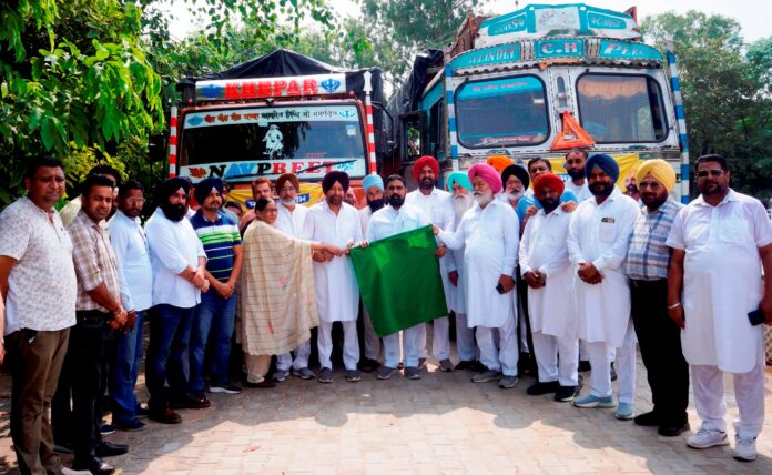 Punjab Desk : ਮੁੱਖ ਮੰਤਰੀ ਭਗਵੰਤ ਸਿੰਘ ਮਾਨ ਦੀ ਅਗਵਾਈ ਵਾਲੀ ਸੂਬਾ ਸਰਕਾਰ ਦੇ ਦਿਸ਼ਾ ਨਿਰਦੇਸ਼ਾਂ ਤਹਿਤ ਜ਼ਿਲ੍ਹਾ ਪ੍ਰਸ਼ਾਸਨ ਅਤੇ ਵੱਖ-ਵੱਖ ਵਿਭਾਗਾਂ ਦੇ ਸਹਿਯੋਗ ਨਾਲ ਹੜ੍ਹ ਪੀੜਤਾਂ ਨੂੰ ਰਾਹਤ ਸਮੱਗਰੀ ਮੁਹੱਈਆ ਕਰਵਾਉਣ ਦੇ ਮੰਤਵ ਨਾਲ ਅੱਜ ਜ਼ਿਲ੍ਹਾ ਪ੍ਰਬੰਧਕੀ ਕੰਪਲੈਕਸ ਤੋਂ ਦੋ ਟਰੱਕਾਂ ਨੂੰ ਹਲਕਾ ਵਿਧਾਇਕ ਸ੍ਰੀ ਮੁਕਤਸਰ ਸਾਹਿਬ ਜਗਦੀਪ ਸਿੰਘ ਕਾਕਾ ਬਰਾੜ ਨੇ ਹਰੀ ਝੰਡੀ ਦੇ ਕੇ ਰਵਾਨਾ ਕੀਤਾ। ਉਨ੍ਹਾਂ ਕਿਹਾ ਕਿ ਪੰਜਾਬ ਸਰਕਾਰ ਹੜ੍ਹ ਪੀੜਤਾਂ ਨੂੰ ਹਰ ਤਰ੍ਹਾਂ ਸੰਭਵ ਮਦਦ ਮੁਹੱਈਆ ਕਰਵਾਉਣ ਲਈ ਵਚਨਵੱਧ ਹੈ।